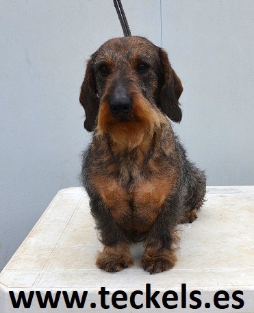 campo y a toda la caza en general.NIKO es la consecución de la estirpe "De Prigarcan", donde todos sus ascendientes son campeones de morfología además de tener pasadas pruebas de trabajo oficiales del Teckel Club de España, además de ser ávidos apasionados en la caza. Un gran Teckel típico y todoterreno, bello y funcional, que posee grandes aptitudes en el terreno morfológico y de belleza, al igual que en el campo y la caza, en donde salen a relucir sus grandes dotes venatorias y pasionales por y para la caza. Niko es un ejemplar de inmejorable calidad y un gran semental que representa a la perfección cómo ha de ser la raza Teckel en su tamaño estándar y en su variedad de pelo duro. Es un Teckel dual, morfológicamente roza la excelencia, con un carácter equilibrado y con una gran pasión por la caza. Estos han de ser los tres pilares principales y fundamentales de toda selección seria. Siempre hay que mejorar, huyendo de la masificación, y exigiendo siempre calidad. Sólo así podremos obtener un Teckel completo, que será el fruto de todo nuestro esfuerzo. Cualquiera que esté interesado en seleccionar la raza con él y ser el padre de sus futuros cachorros, pueden CONTACTAR conmigo. Gustosamente les atenderé.